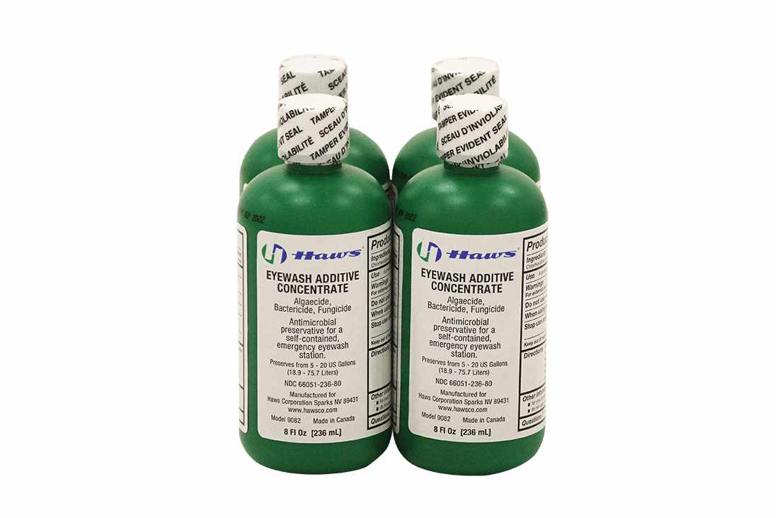 Model 9082, ‘sterile’ bacteriostatic preservative for use in portable eyewash stations. One 5 oz. (148 ml) bottle will preserve 5 to 20 gallons (18.9 to 75.7 L) of potable water for up to three months. Shelf life of 3 years. Each bottle is sold seperately. This ‘sterile’ solution is in compliance with FDA regulations. Temperature storage requirements; store at 36-104®F, and use at 59-86®F.